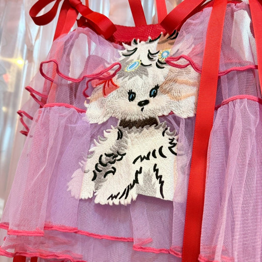 レッドチェックリボンチュールスカート