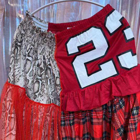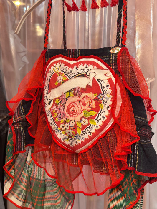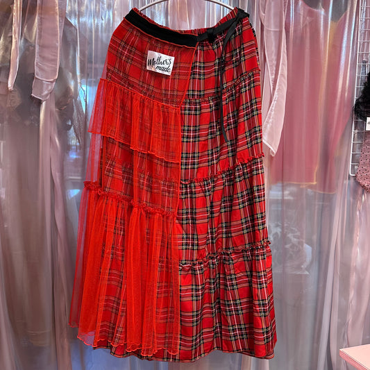 赤いチュールチェックスカート