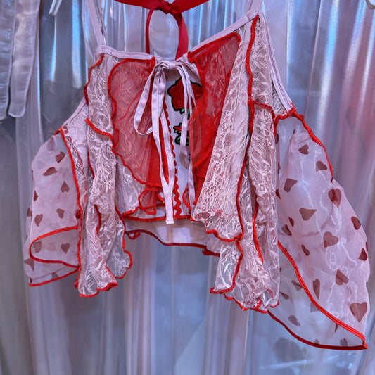 ピンク薔薇刺繍レースキャミソール
