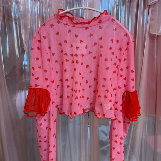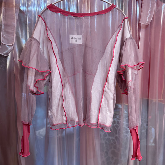 ピンクシアーフリル長袖トップス