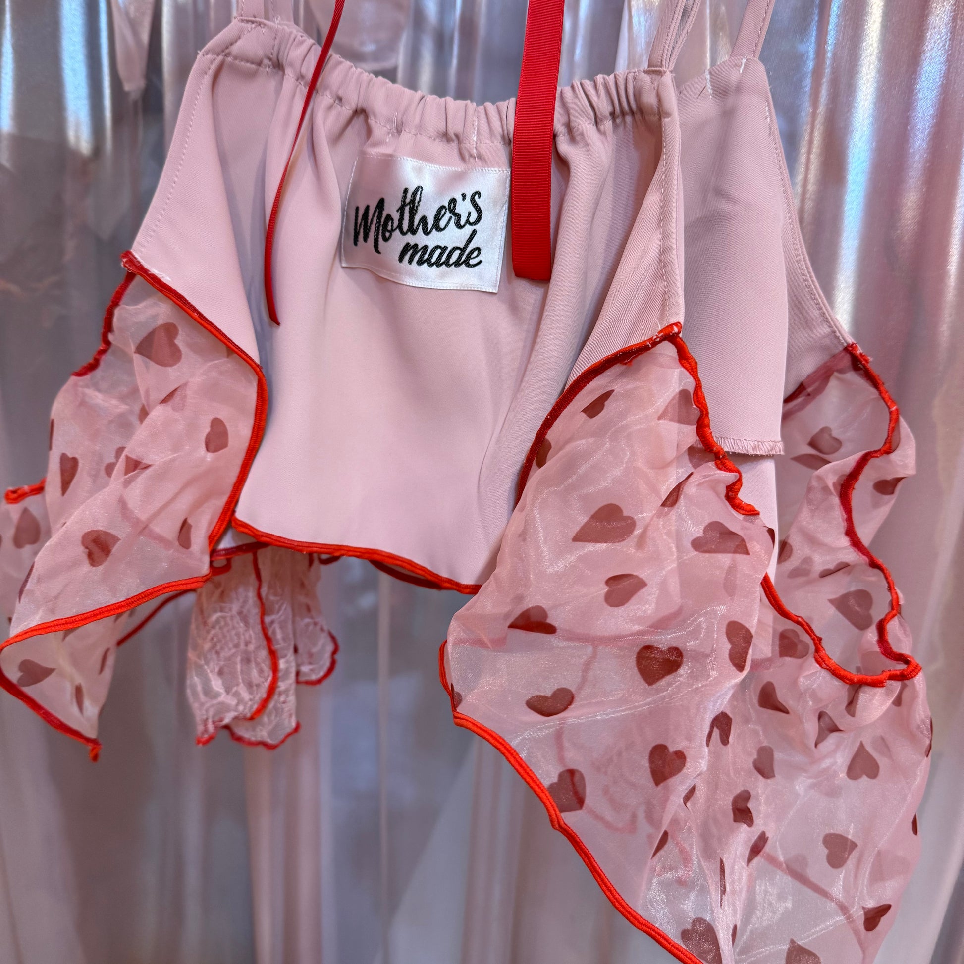 ピンク薔薇刺繍レースキャミソール