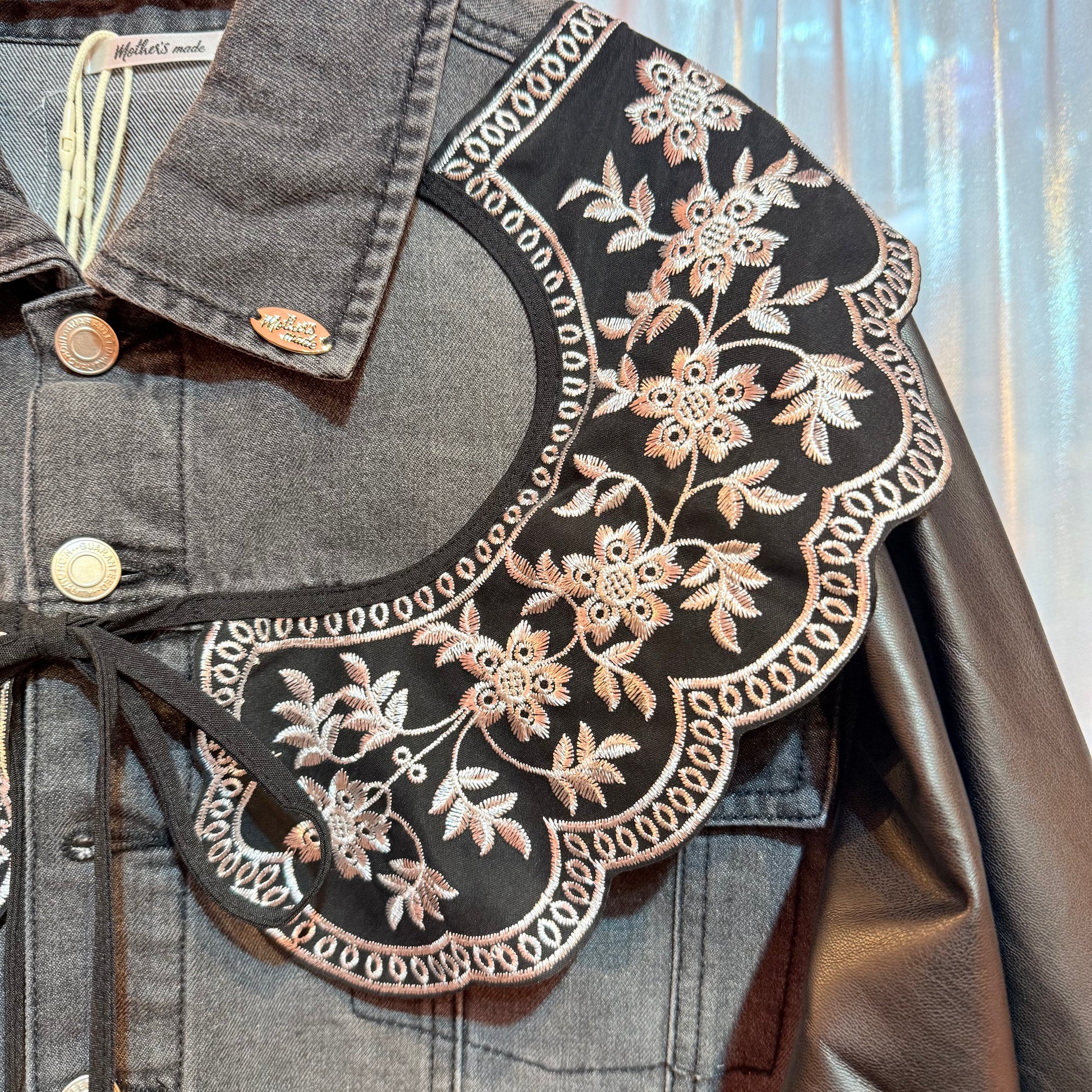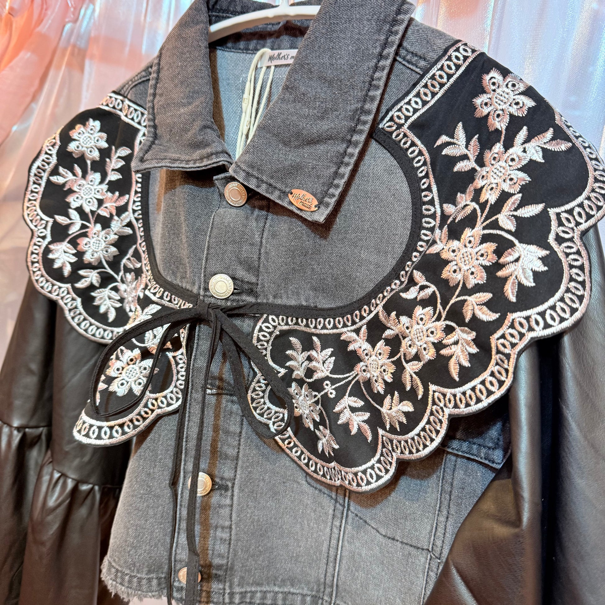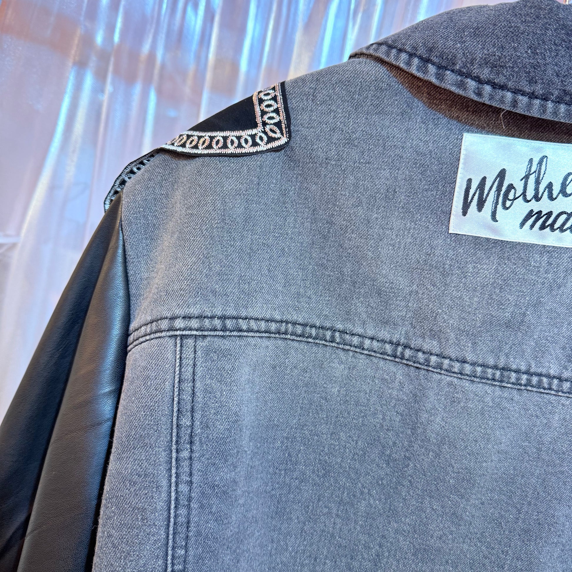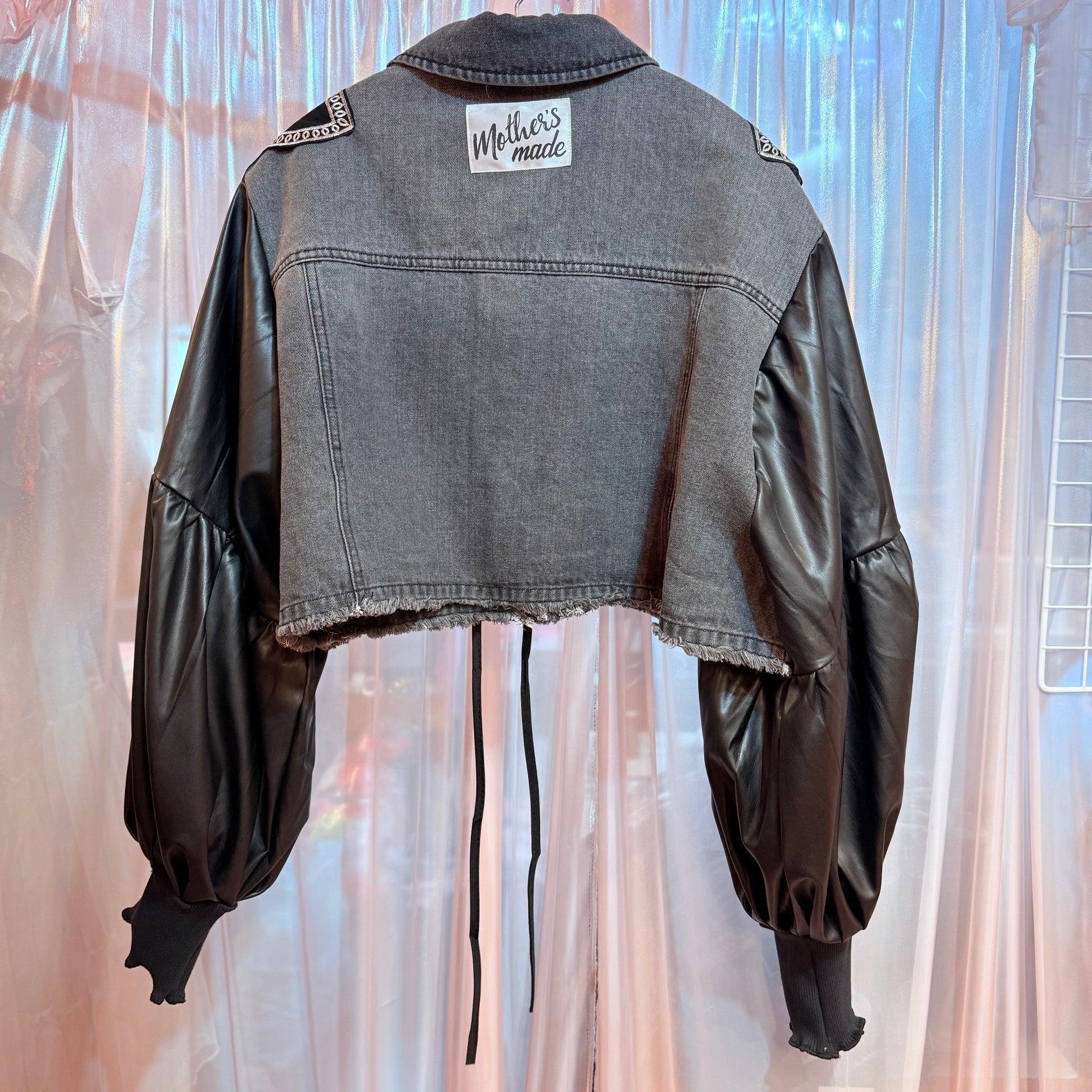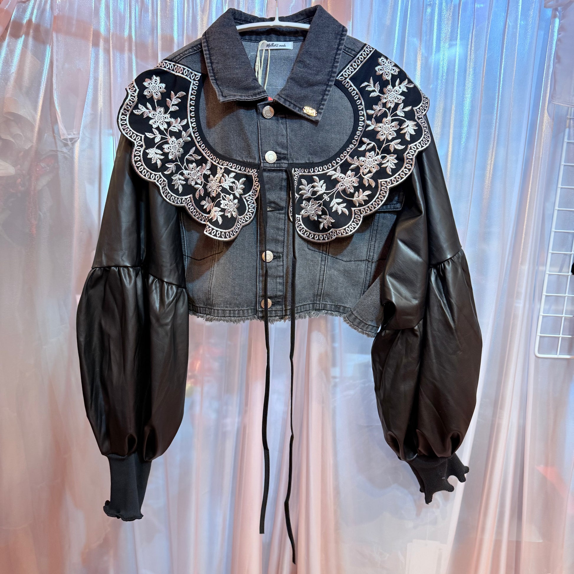 フェイクレザーのバルーンスリーブデニムジャケット