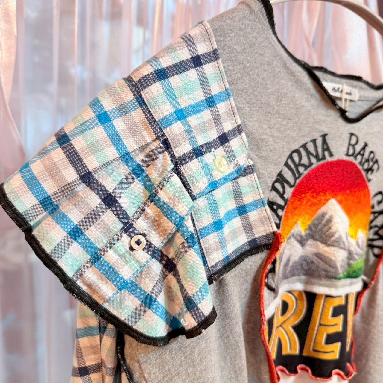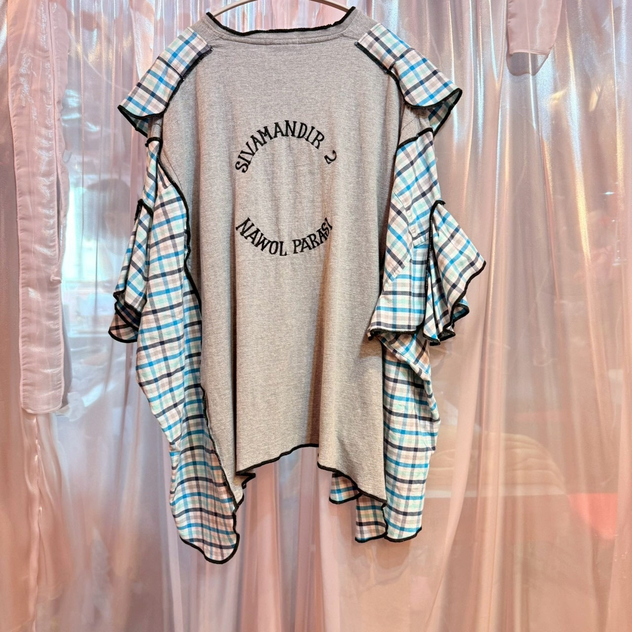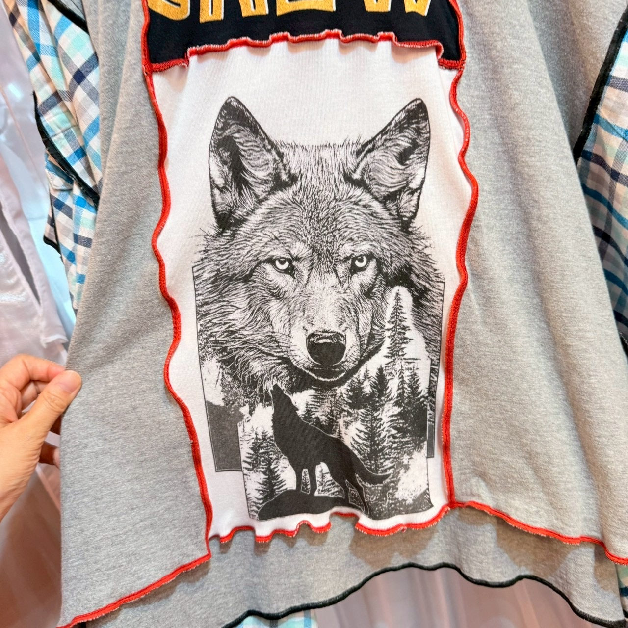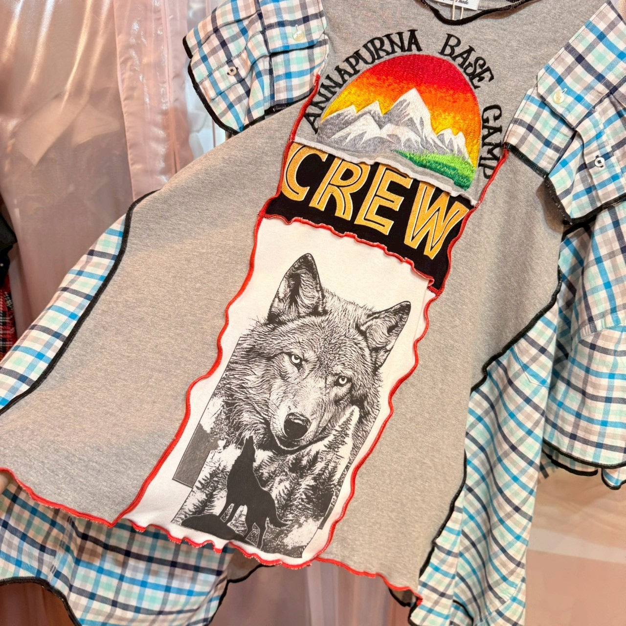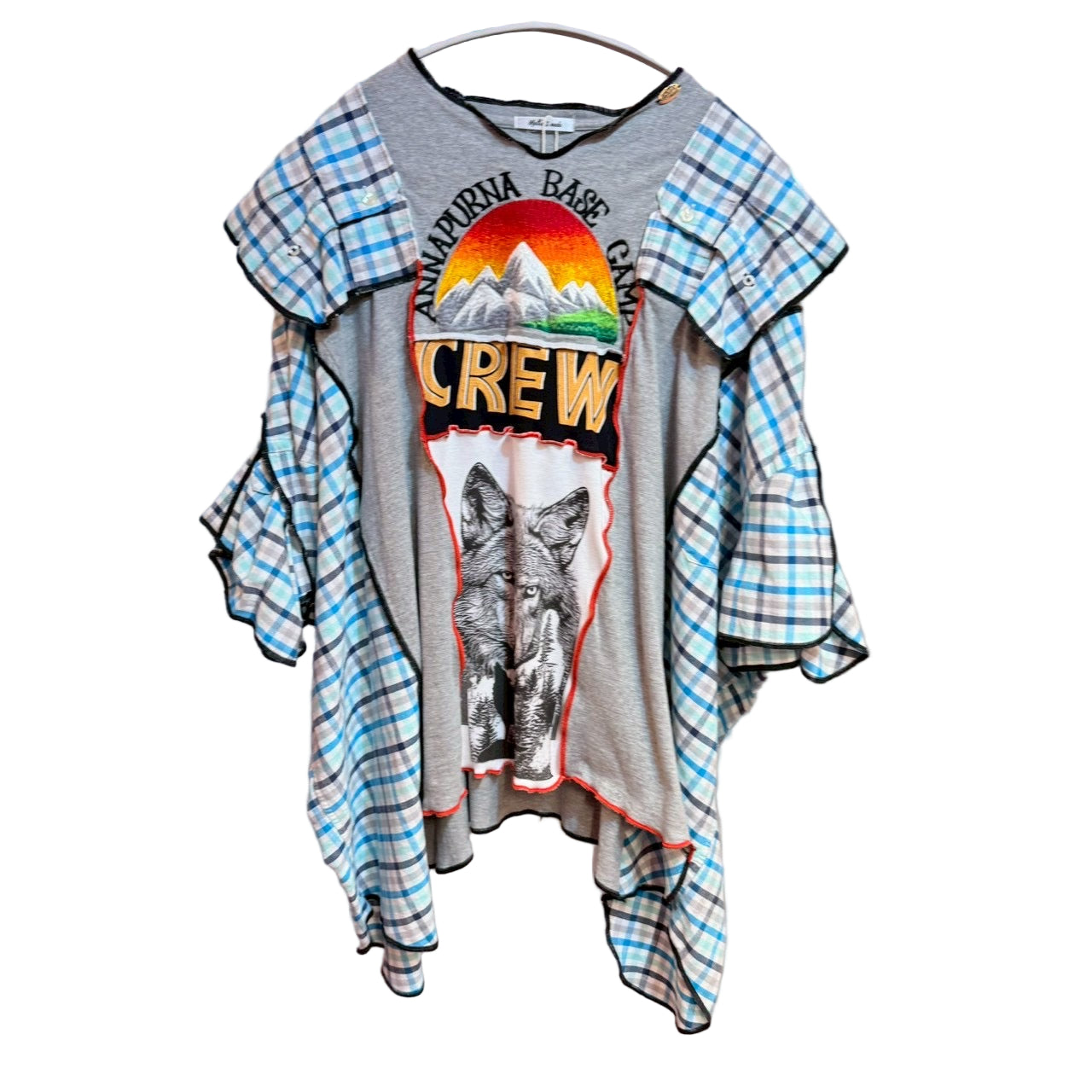 ウルフチェック柄リメイクトップス
